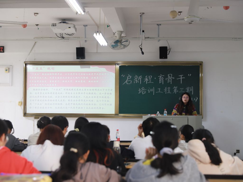 25级辅导员郑依晴、22级辅导员吴荣佳两位老师联袂授课,将思想引领推向新高度。郑依晴老师以“青春挺膺共担当”为主题,结合党的二十届四中全会精神与“十五五”规划,借助黄文秀、南仁东等榜样事迹,筑牢学员的担当意识。吴荣佳老师则详细阐释共青团员发展要求与学生干部行为准则,强调团员应守牢思想防线,骨干须扛起服务责任。此次培训让学员深刻领悟到,青年的担当,是将个人成长融入学院与时代发展,成为照亮自己、温暖他人的光。