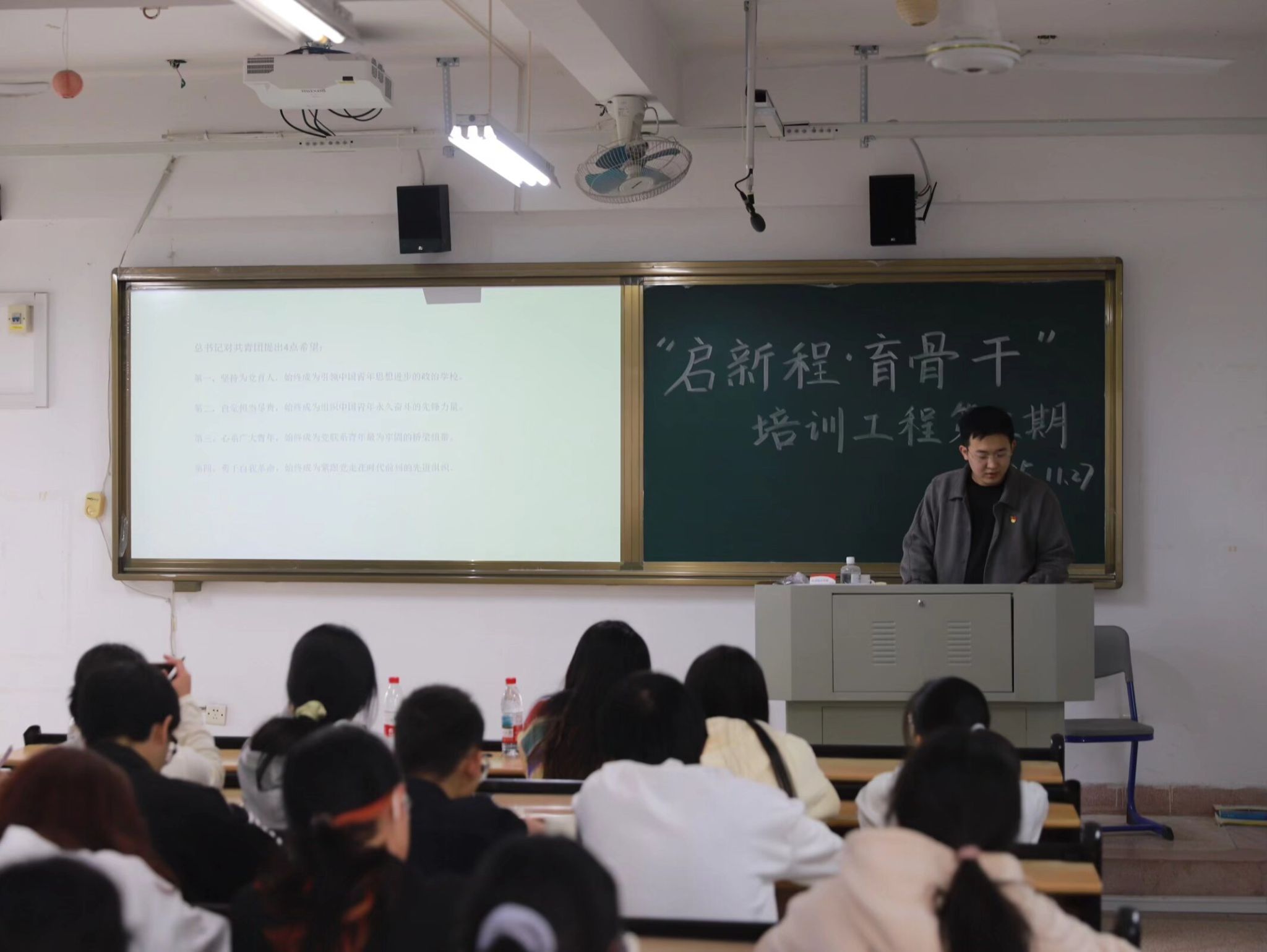 团委书记杨文亮老师带来收官之课。他结合多年指导学生工作的经验,强调学生干部要严守纪律、勤学善思,在班风和学风建设中作表率;系统回顾了整期培训的思想引领与技能赋能脉络,阐释学生骨干的成长路径,并寄语学员以学促干、以身作则,在岗位实践中锤炼品格,将所学所悟化为投身学生工作的底气,以热忱为帆、担当为桨,在服务同学与学院发展的征程上勇毅前行。