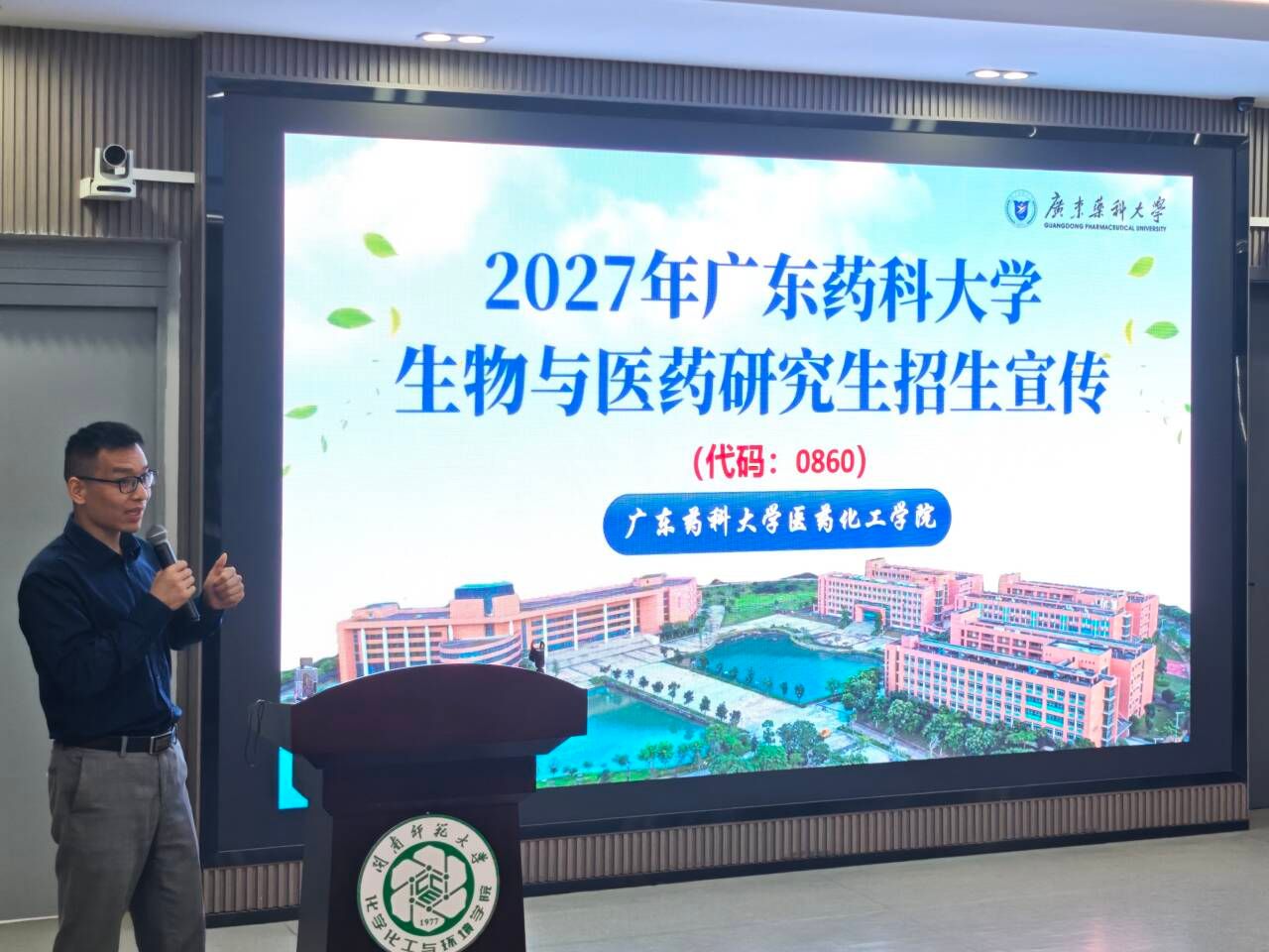 学生广泛关注的报考与培养事宜,曹华教授系统介绍了广东药科大学医药化工学院的办学特色、学科建设成就、优势研究方向及报考相关事项。他详细阐述了学院独具特色的“产教融合”人才培养模式以及一流的实训教学体系,并结合实例,清晰梳理了毕业生的多元就业方向及行业核心岗位需求。
